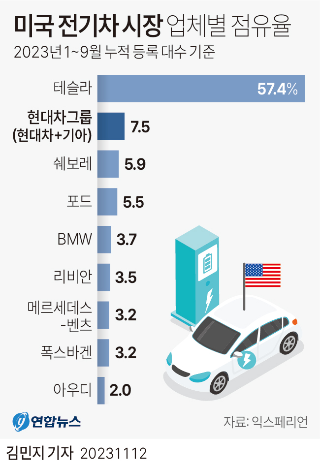 미국 전기차 시장은 테슬라 혼자 50% 를 넘게 점유했고, 이는 다시 말해 다른 전기차 회사의 점유률을 다 합친거 보다 높다는 의미이다. 아무리 다른 업체가 힘을 합쳐 테슬라를 압박해도 테슬라는 자기들이 원하는 대로 독자 노선을 달려 나갔다. 오히려 테슬라는 슈퍼 차저 규격을 공개하며, 다른 자동차 업체들이 슈퍼 차저를 사용하라고 역으로 압박하는 모습도 보여줬다.